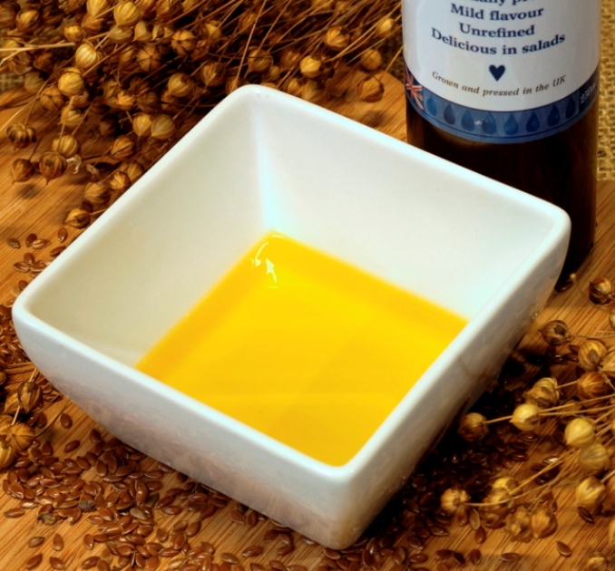 - Fresh cold-pressed Flaxseed Oil, Omega-3, lovely buttery flavour and exceptionally mild